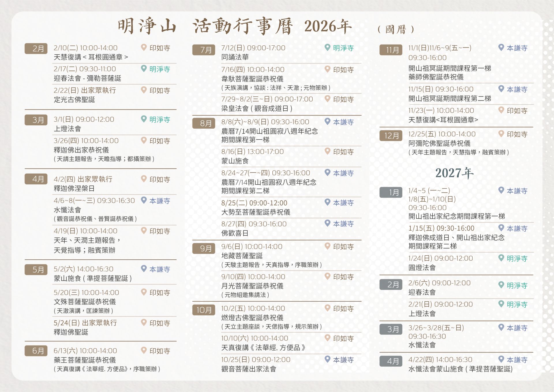 印如寺月課程